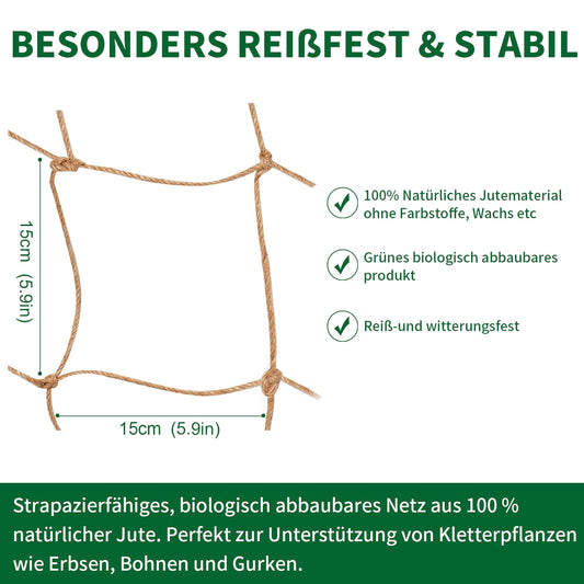 Plant Support Netting - Biodegradable Natural Jute Net for Garden Climbing Vining Plants Cucumber, Vine, Fruits & Vegetables Tomato (6.6 Ft x 16.4 Ft, 5.9 Inch Squares)