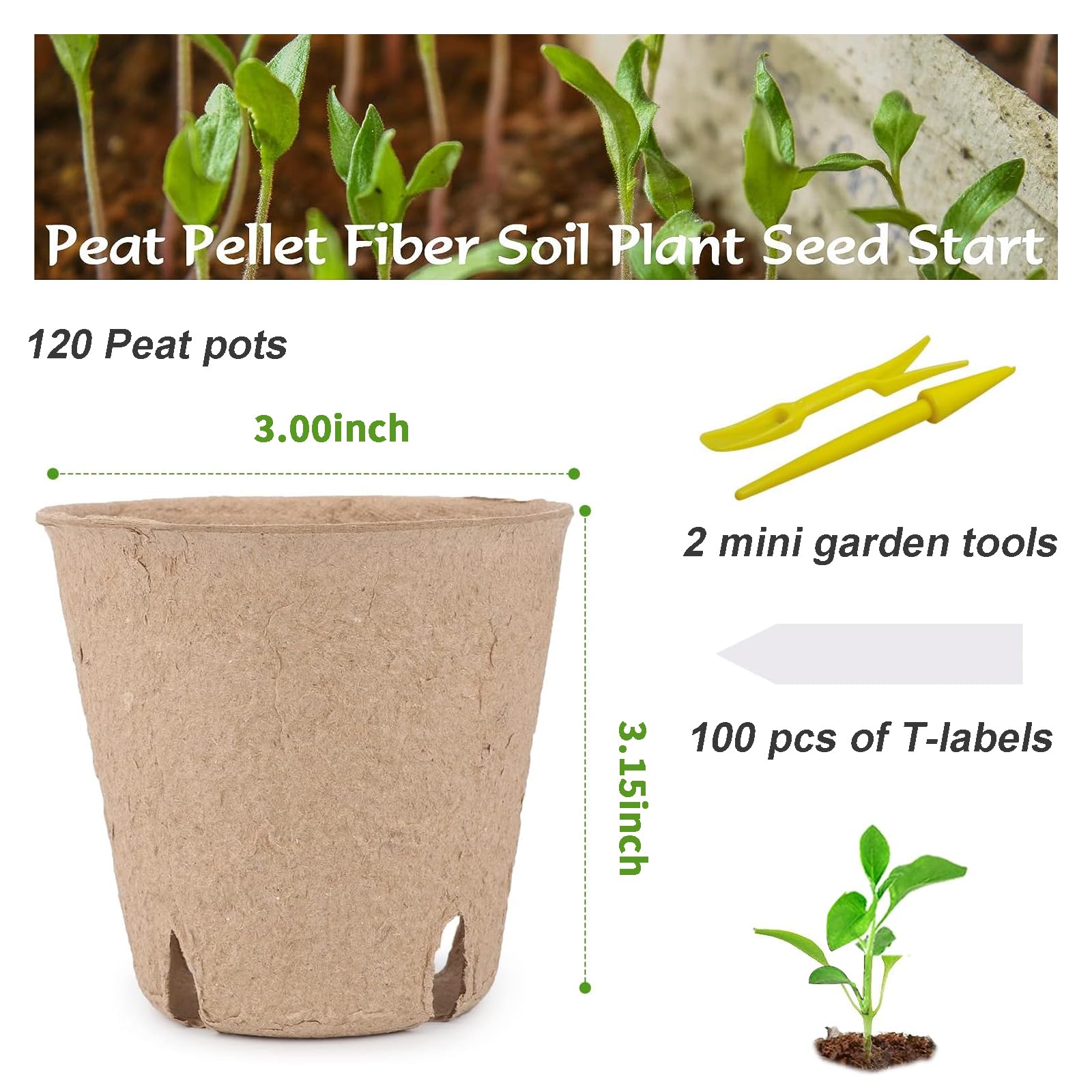 - 【Comprehensive Seed Starter Kit】Each package includes 10 plant germination trays (120 cells peat pots), 100 premium planting labels, and 2 mini plant transplanting tools.