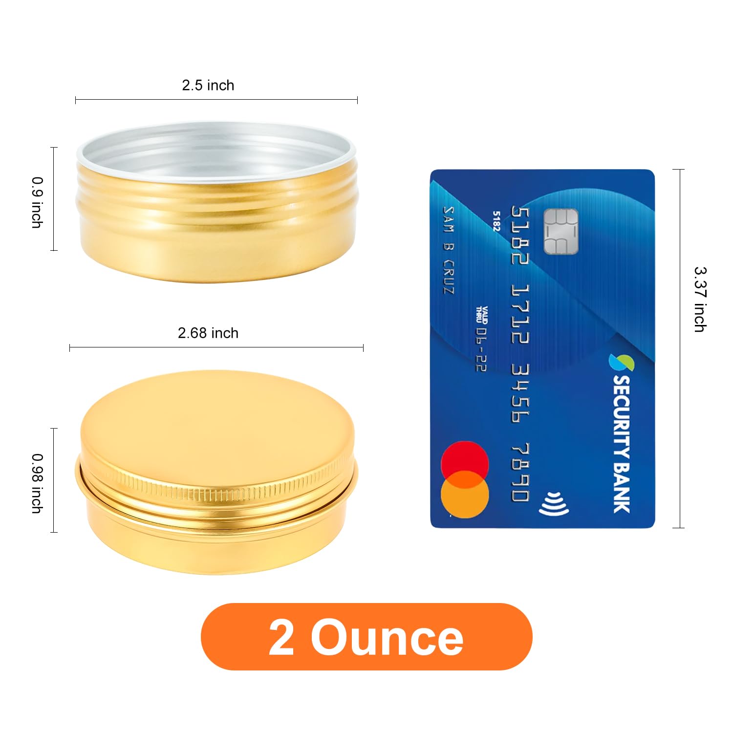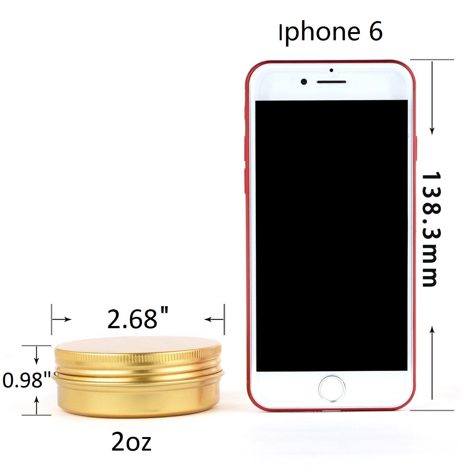 - Dimensions - Diameter--2.68 inches; Height--0.98 inches; Capacity--2oz/60ml (Color may be a little different from the image as the display resolution). Premium rust-proof food-grade aluminum,So that you could use them to storage many kinds of things