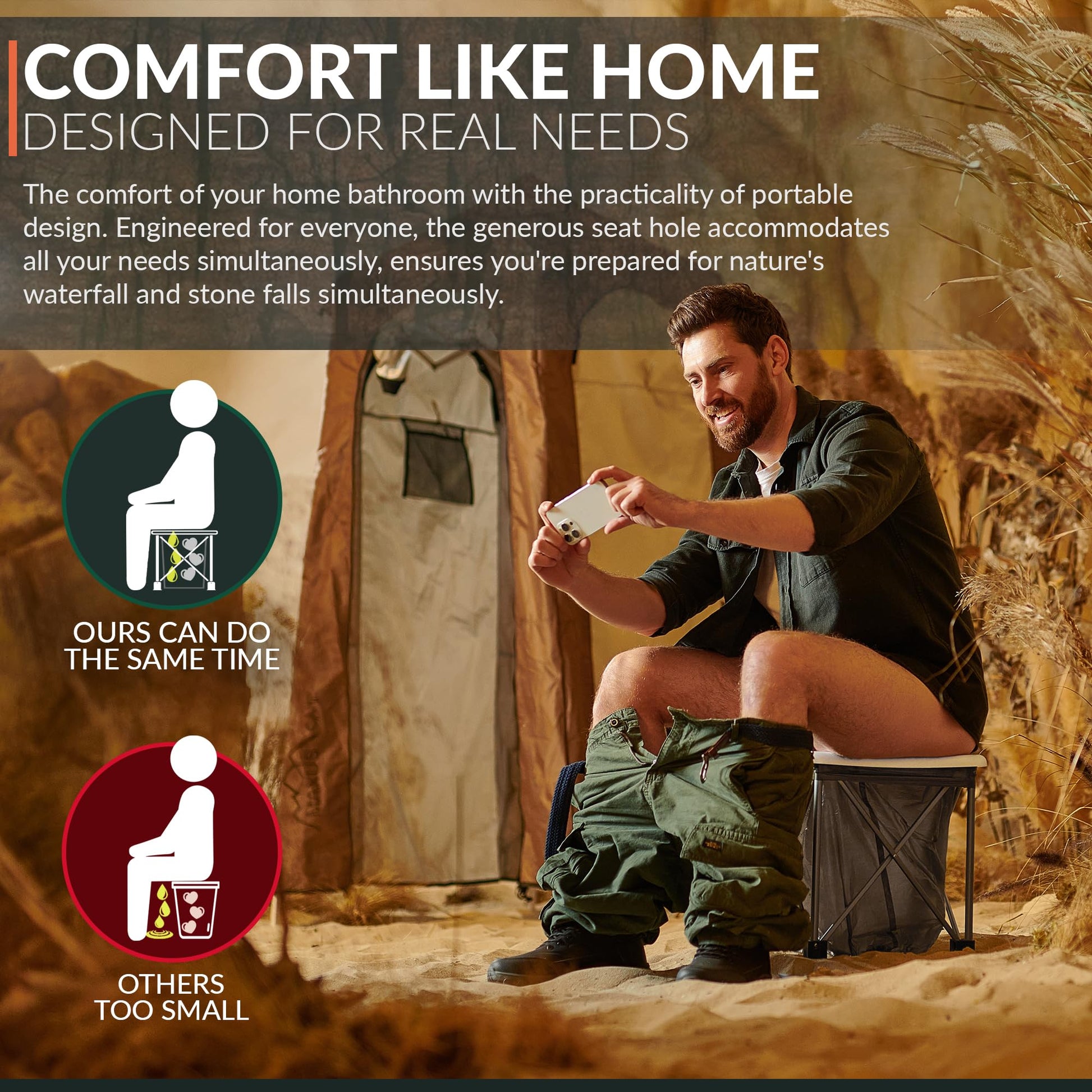 - 【Foldable XL Seat】 - Unfolds in a single motion for speedy setup. These camping toilet's portable design includes an extra-large seat for home-like comfort. An ideal porta potty for adults.