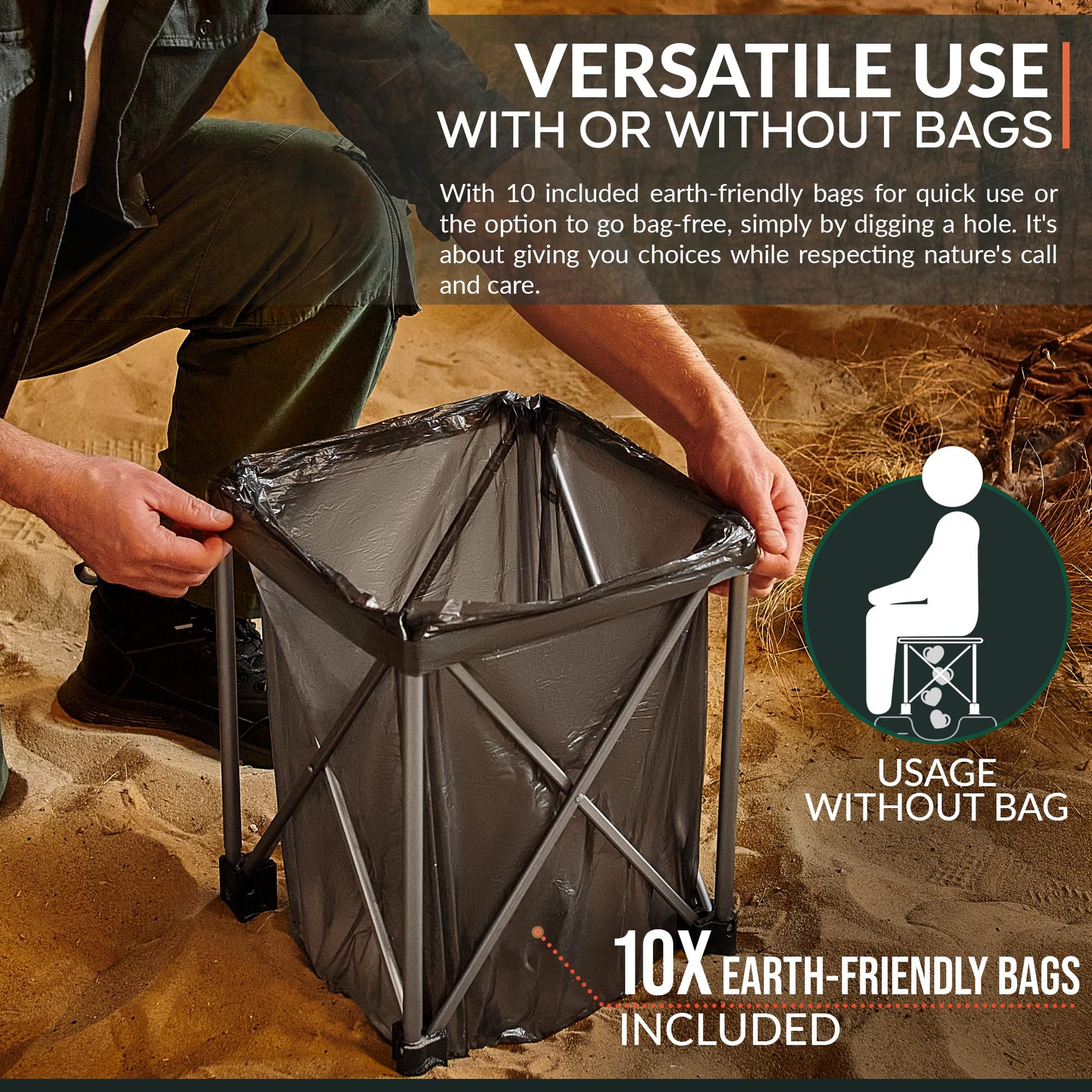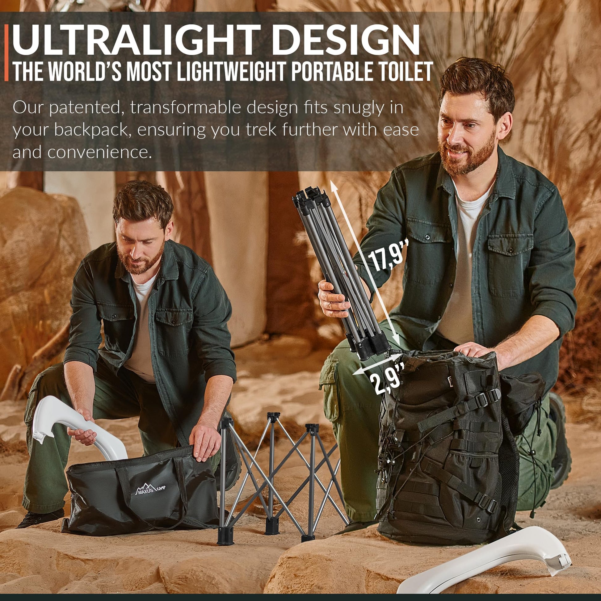 - 【Sturdy Aluminum Frame】 - This portable toilet for camping features an ultralight, aviation-grade aluminum frame that supports up to 350 lbs. The portable potty for adults on the go.
