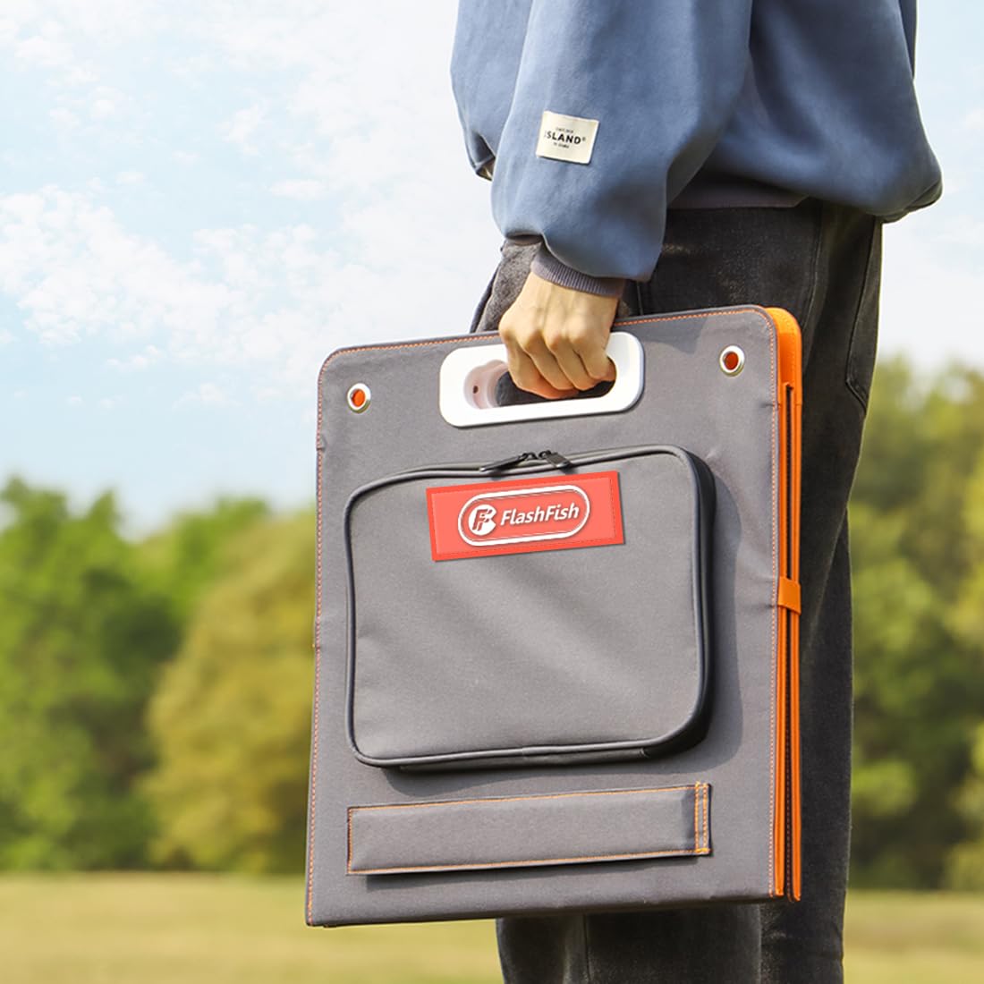 - [ Easy Setup And Kickstand Included ]: The Flashfish 60W solar panel features 2 kickstands that can be placed firmly on any surface ground. With just a few seconds of setup, you can start soaking energy from the sun for your power stations. The TPE rubber handle allows you to carry around easily when taking off-grid adventures.