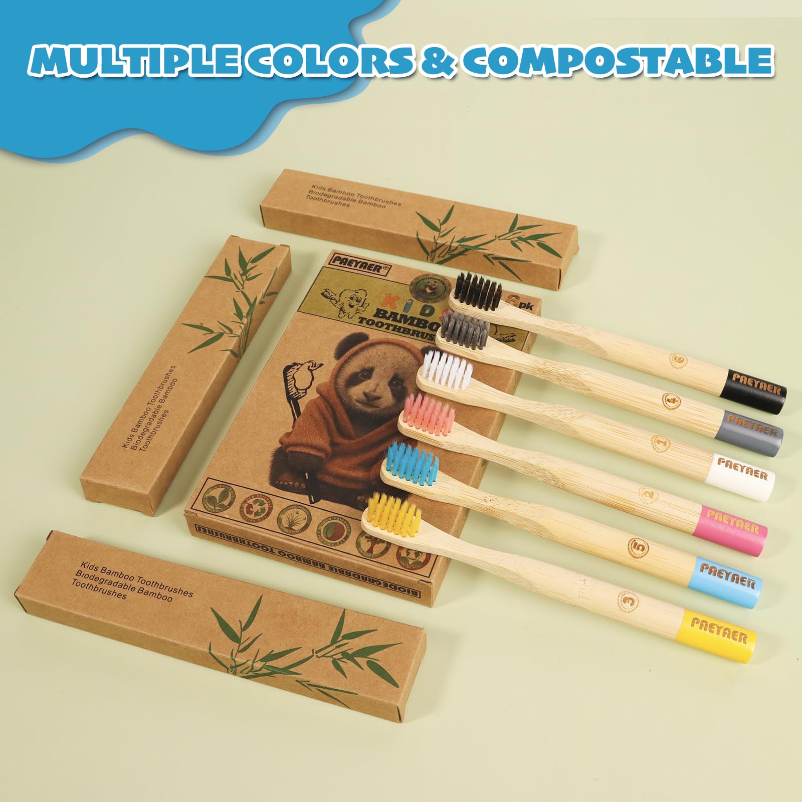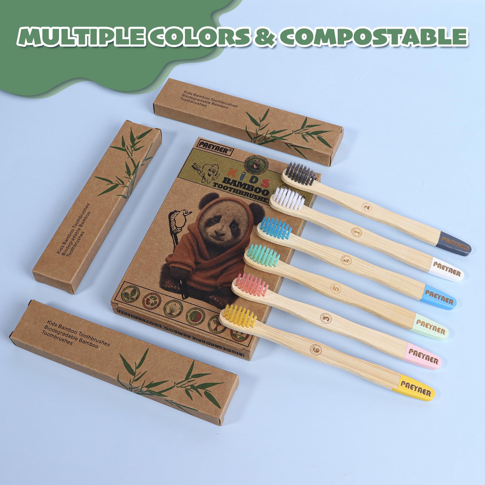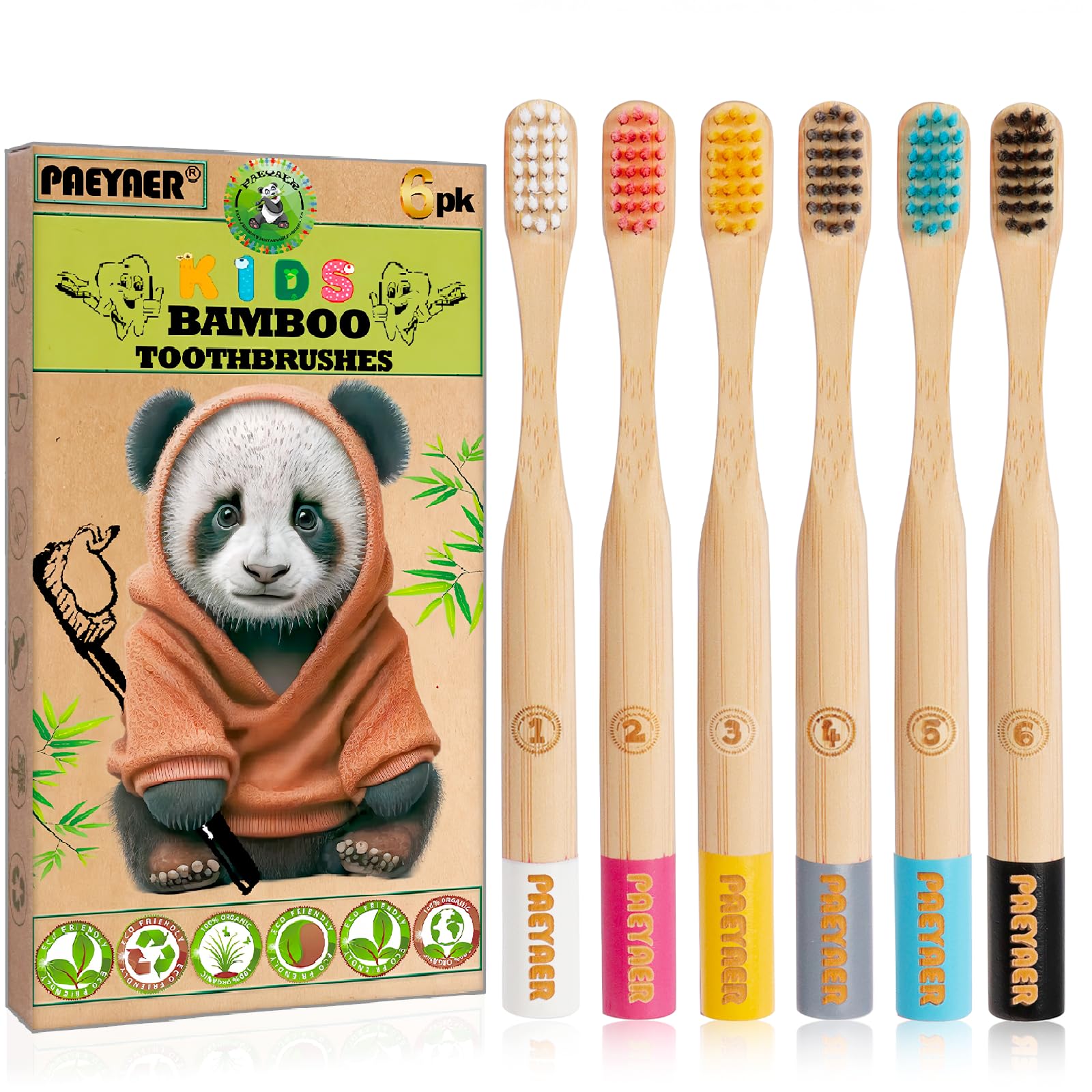 New Kids Bamboo Toothbrushes - 6 Pack, Organic Soft Bristle Toothbrush for Kids, Biodegradable Children's Toothbrushes (Toddler Toothbrush Ages 3-12, Multicolor)