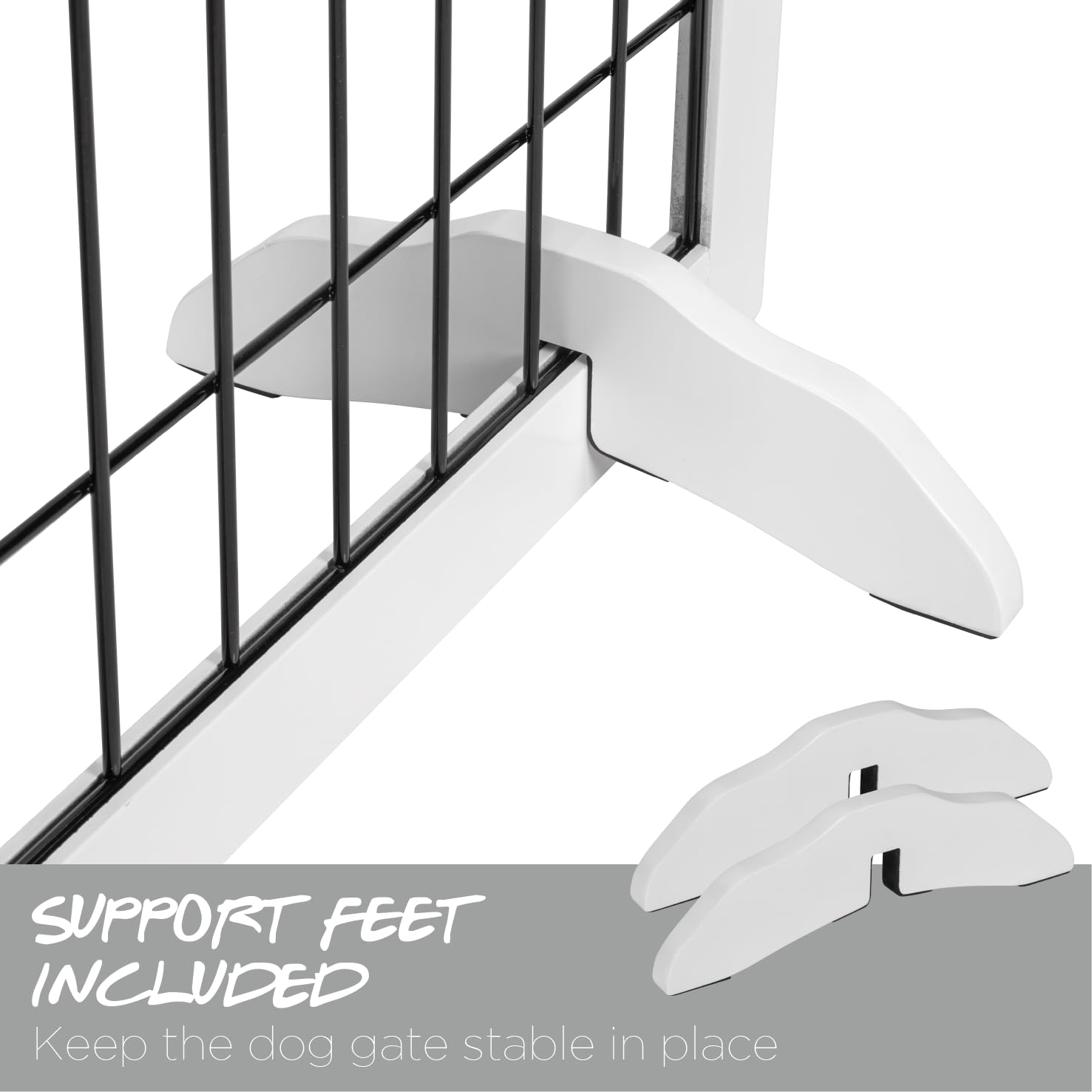 - Freestanding pet gate: Free-standing design requires no wall attachments, lightweight allows for easy to move &store. Two support Feet For Additional Balance.