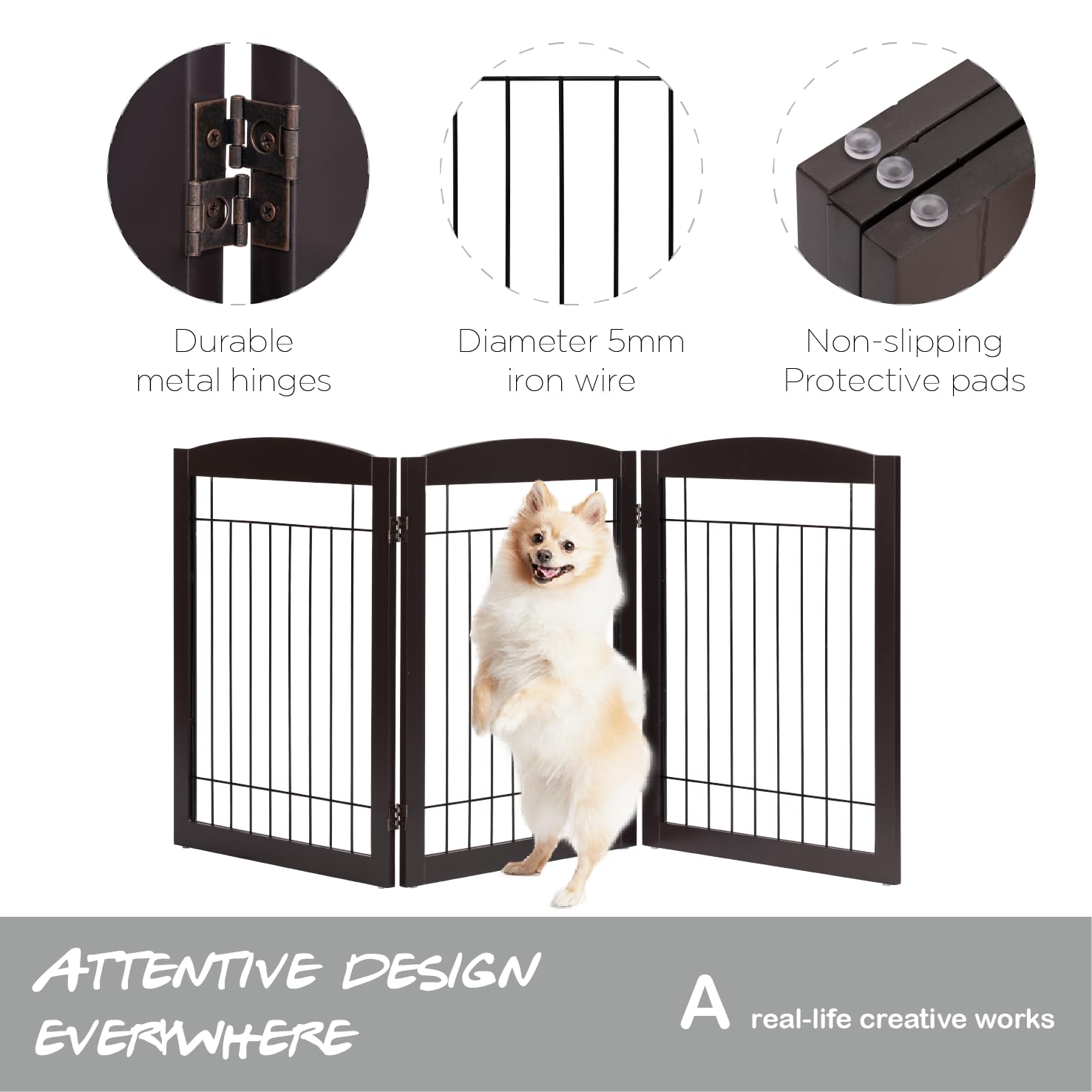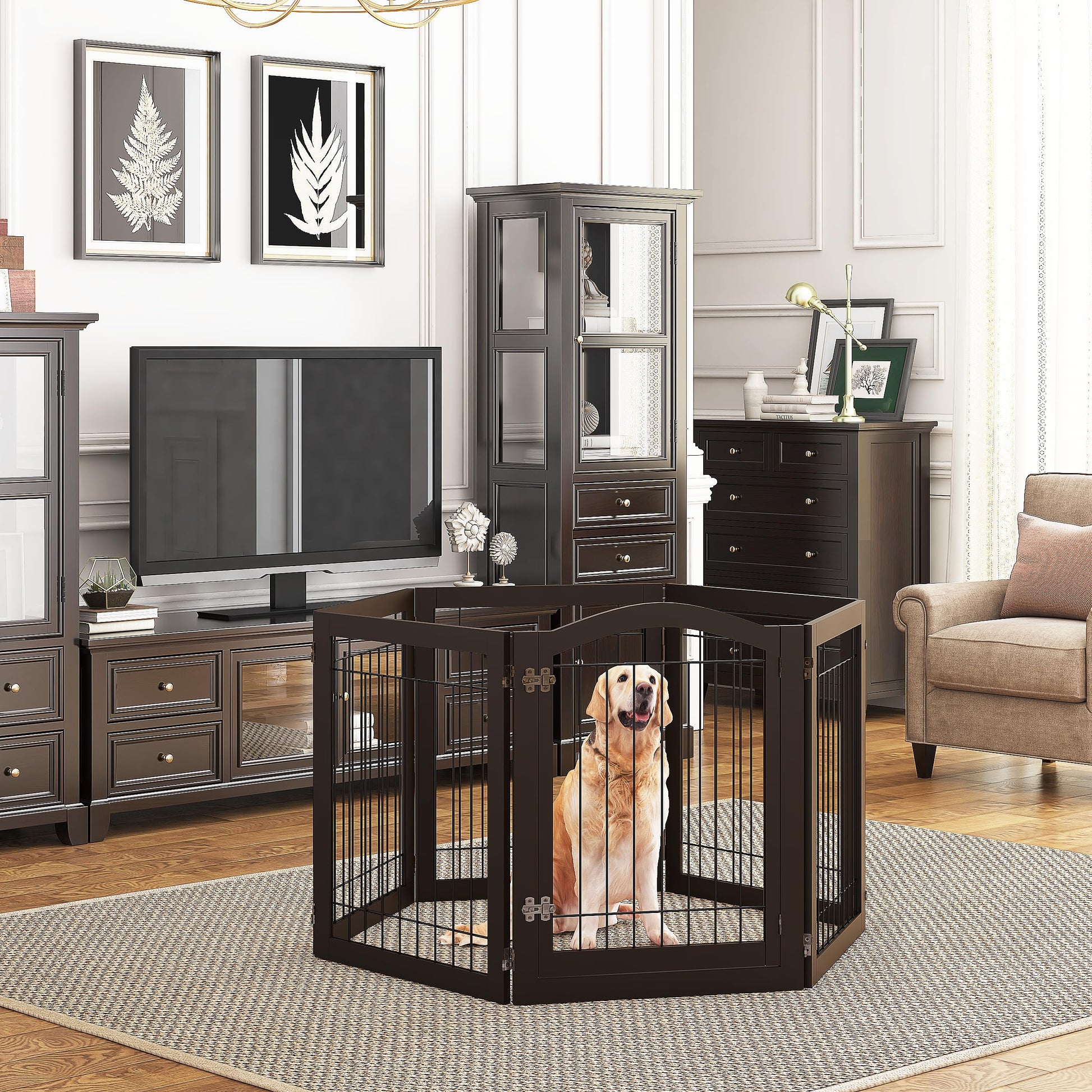 - DURABLE AND ATTRACTIVE: Those pet panels Constructed from a durable solid wood frame and strong mental wire interior, It's Perfect for Especially Large Dogs or a Puppy Who like to Chew on Everything, yet the pet gate fit beautifully in any home decor