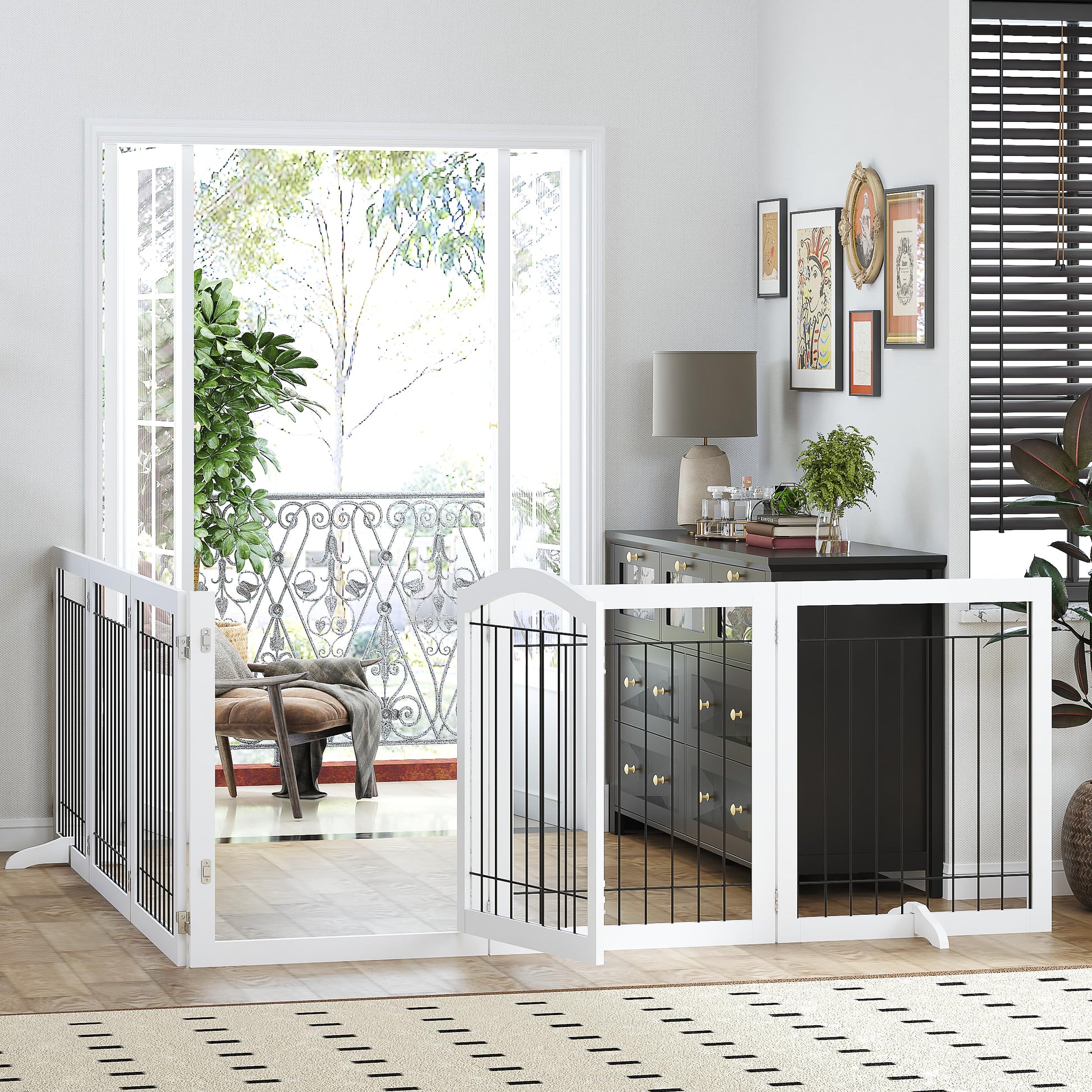 - Pet gate with door: The gate includes a lockable door that allows you to move freely from room to room without having to shuffle the entire unit.