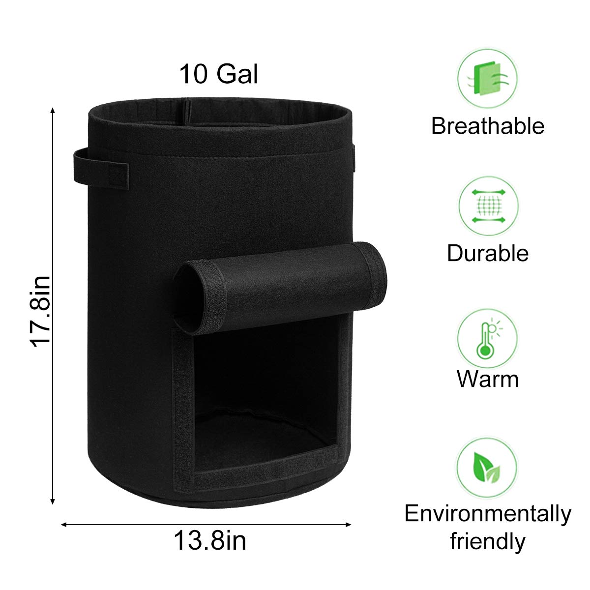 - Large Capacity: These grow bags for growing potatoes with large capacity of 10 gallons allow to grow veggies as much as you want. Thanks to the large size, it will create a stable growing environment for veggies and flowers.