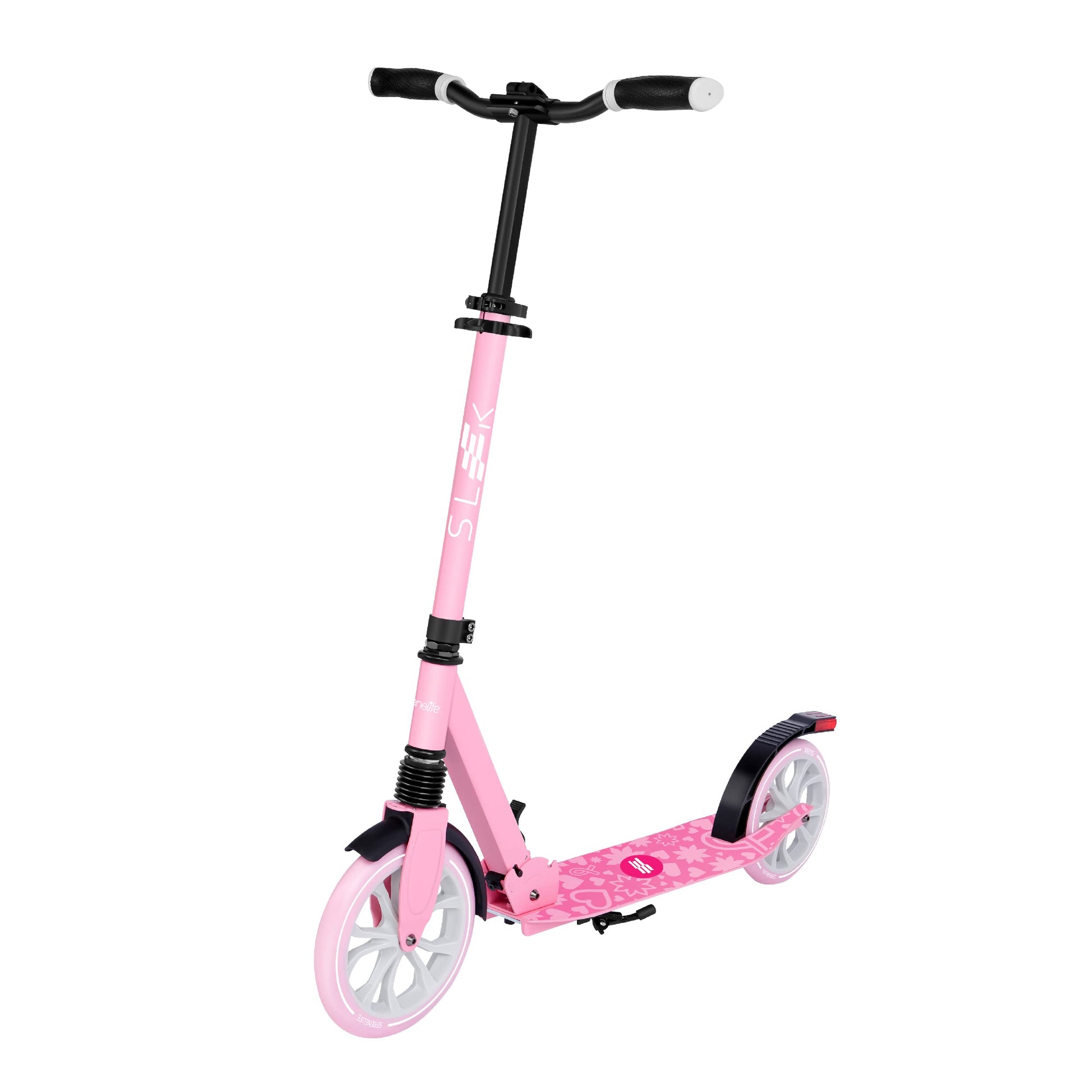 - SMOOTH RIDE: This 2-wheel big kid scooter features durable 8” wheels with ABEC-7 bearings, guaranteeing smooth rides on uneven surfaces. Equipped with a mudguard front wheel, non-slip deck, and rear flashing light for added stability and safety