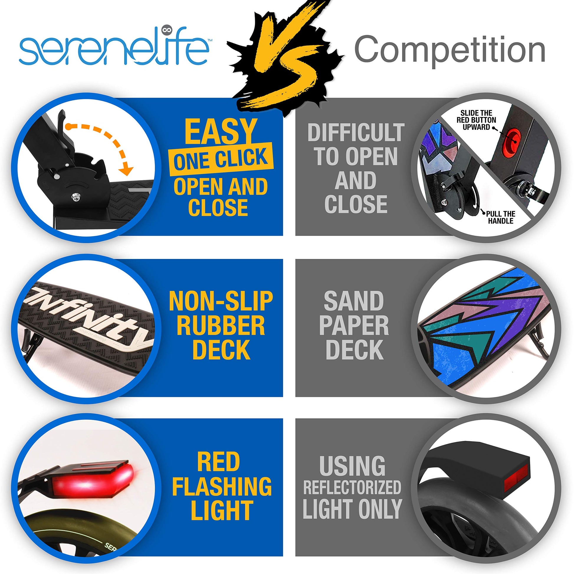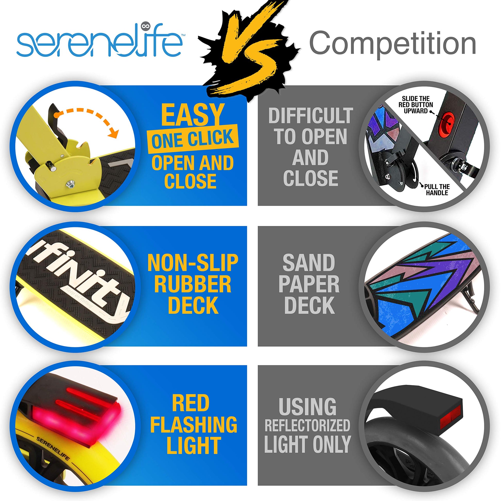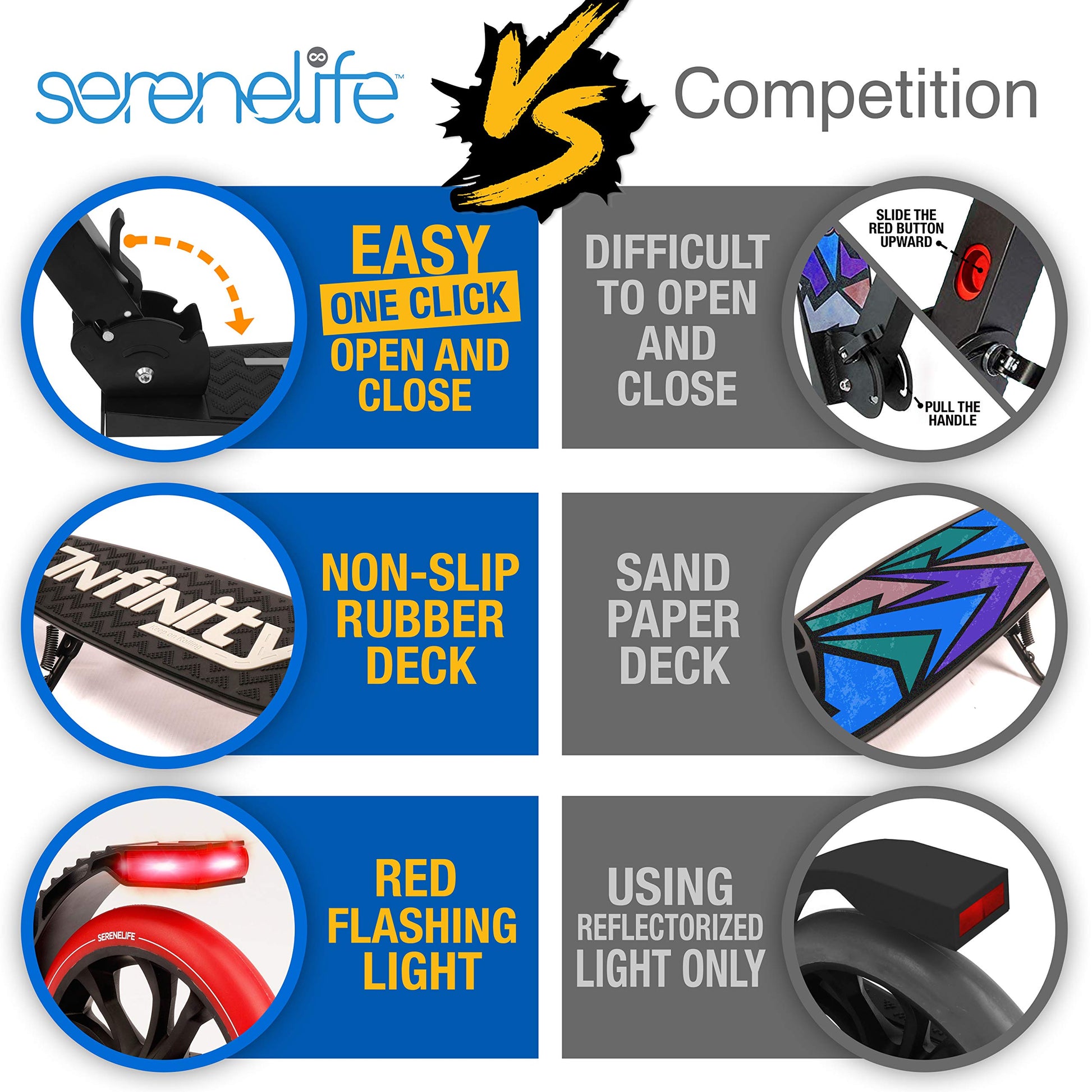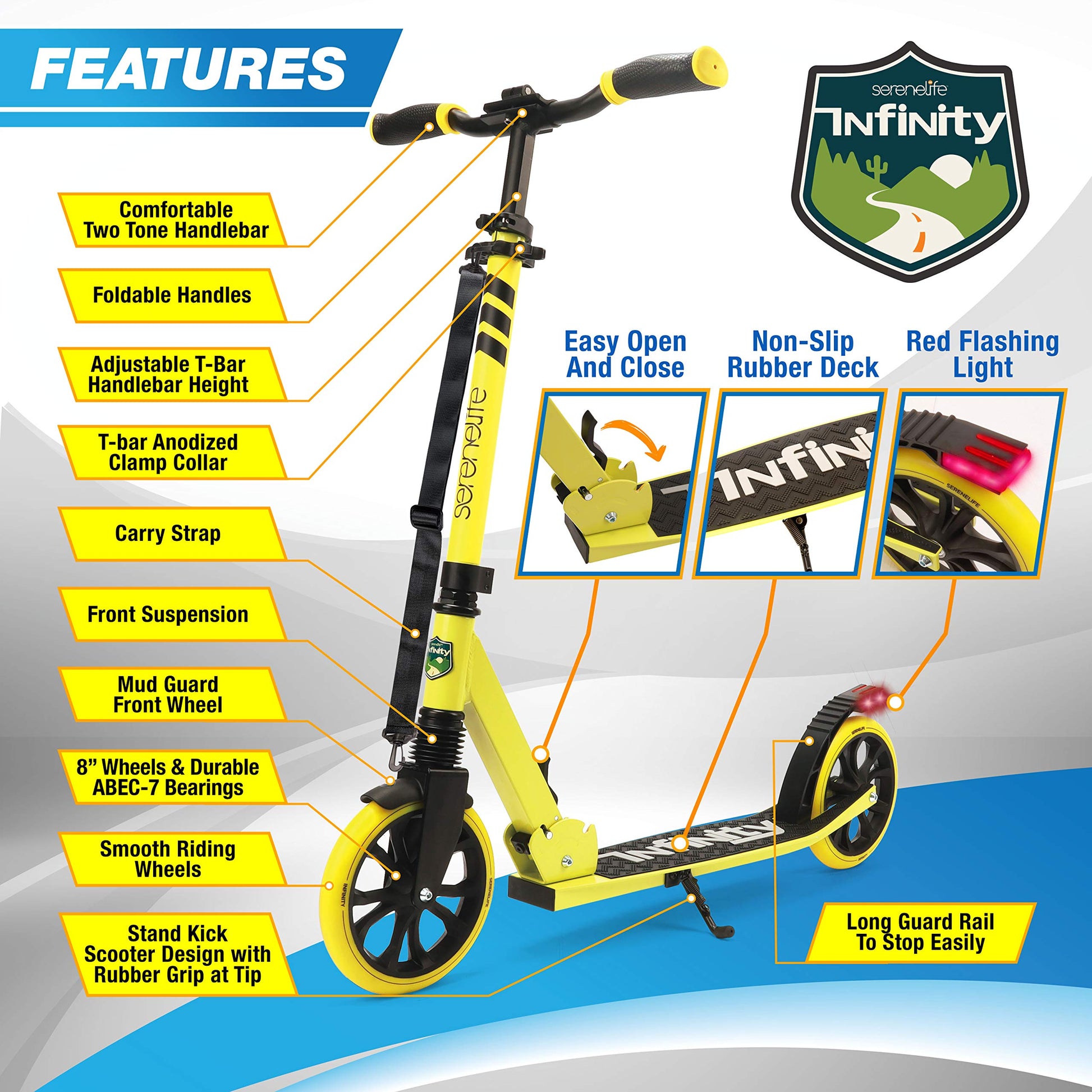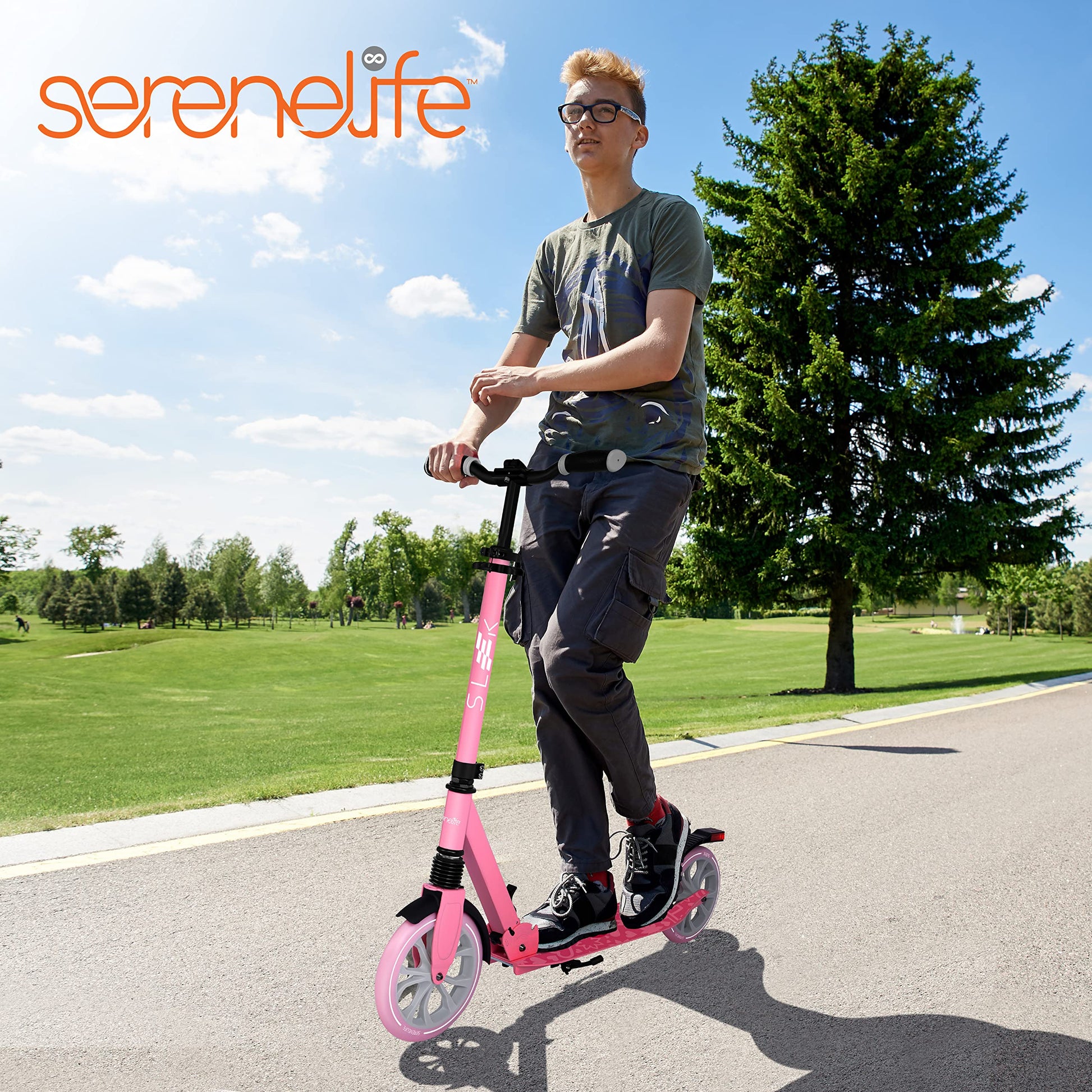 SereneLife Kick Scooter Adult Teenagers Kids- 2 Wheel Kids Scooter with Adjustable T-Bar Handlebar - Alloy Anti-Slip Deck - Portable Folding Scooters for Kids with Carrying Strap